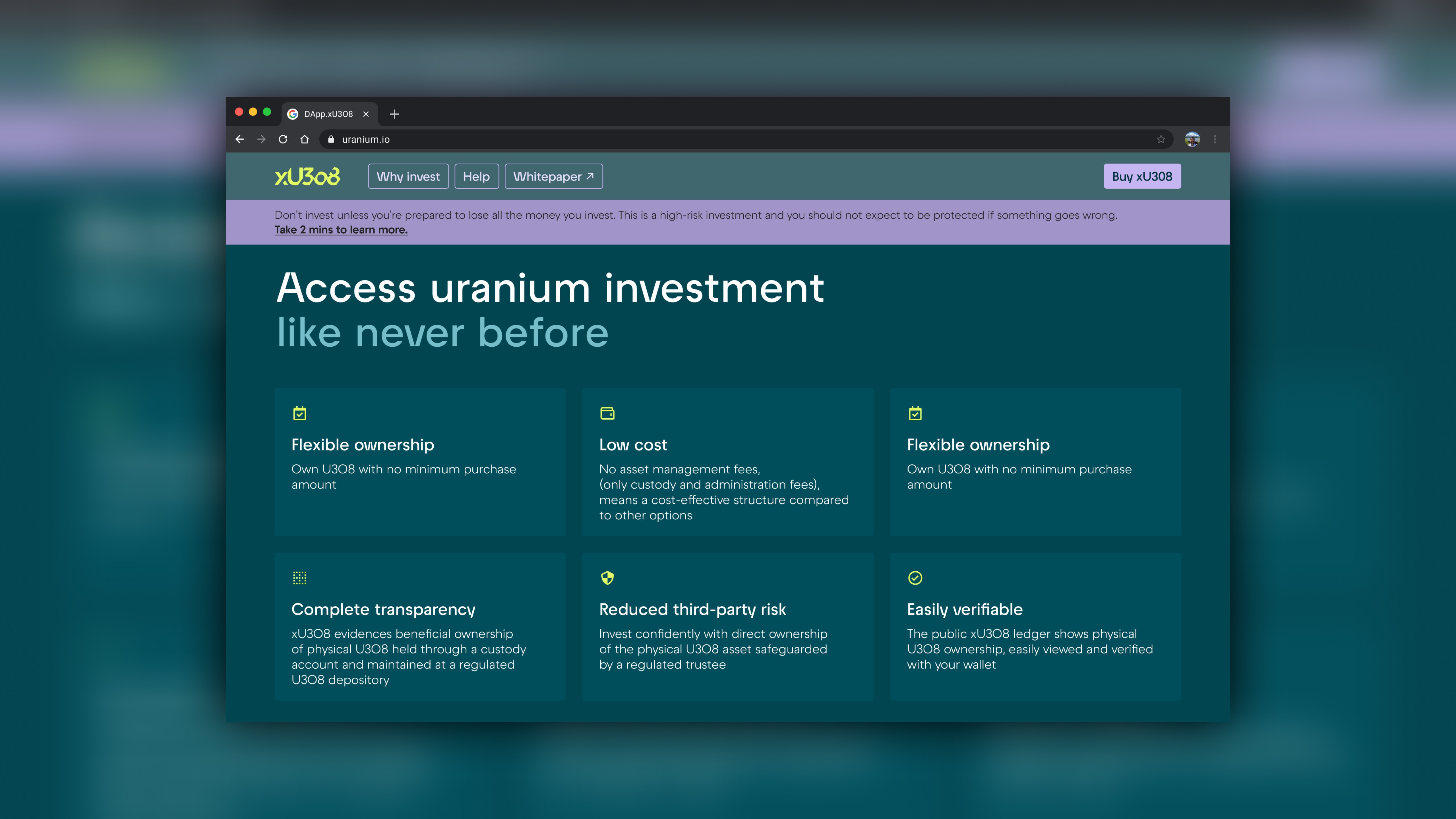 Built the marketing site and helped shape the product for xU3O8, the first platform to trade real-world uranium on-chain. Made a niche asset simple to access, own, and understand. Live now.
